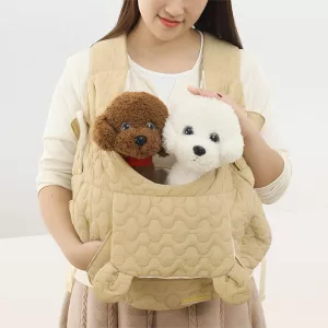 Primdog brystveske er laget av stoff som lar luft sirkulere fritt. Dette eliminerer risikoen for overoppheting og sikrer kjæledyrets komfort.