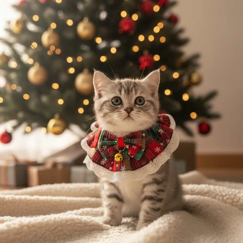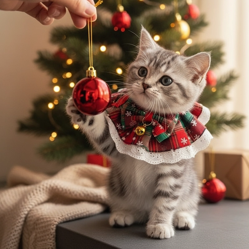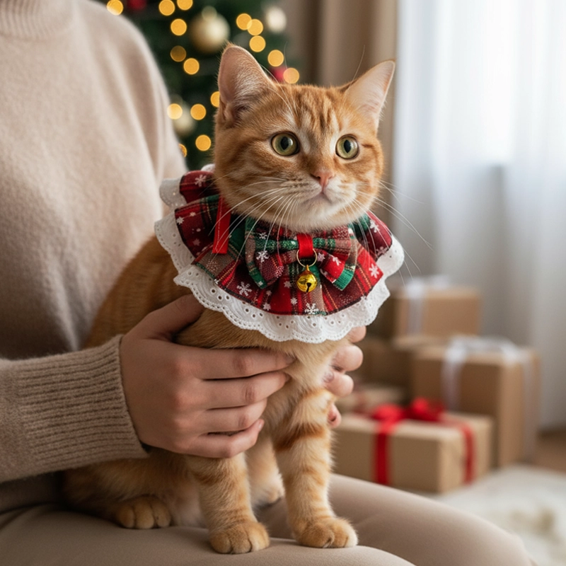 Julekrage for katt med sløyfe og bjelle
