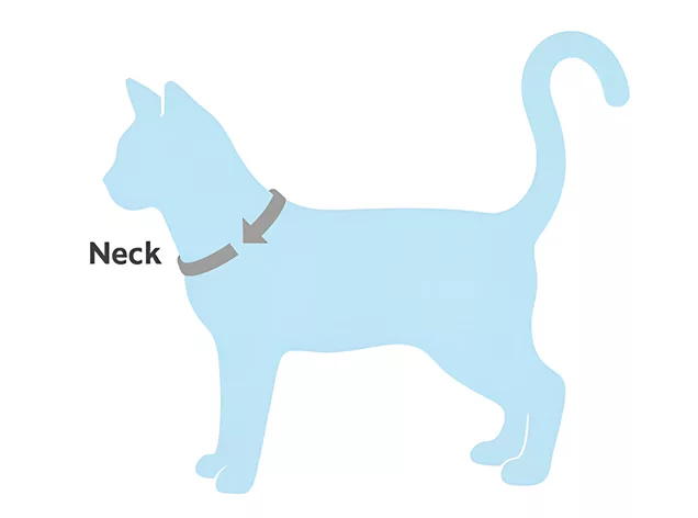 - 1. Vikle målebåndet rundt bunnen av halsen der halsbåndet sitter.