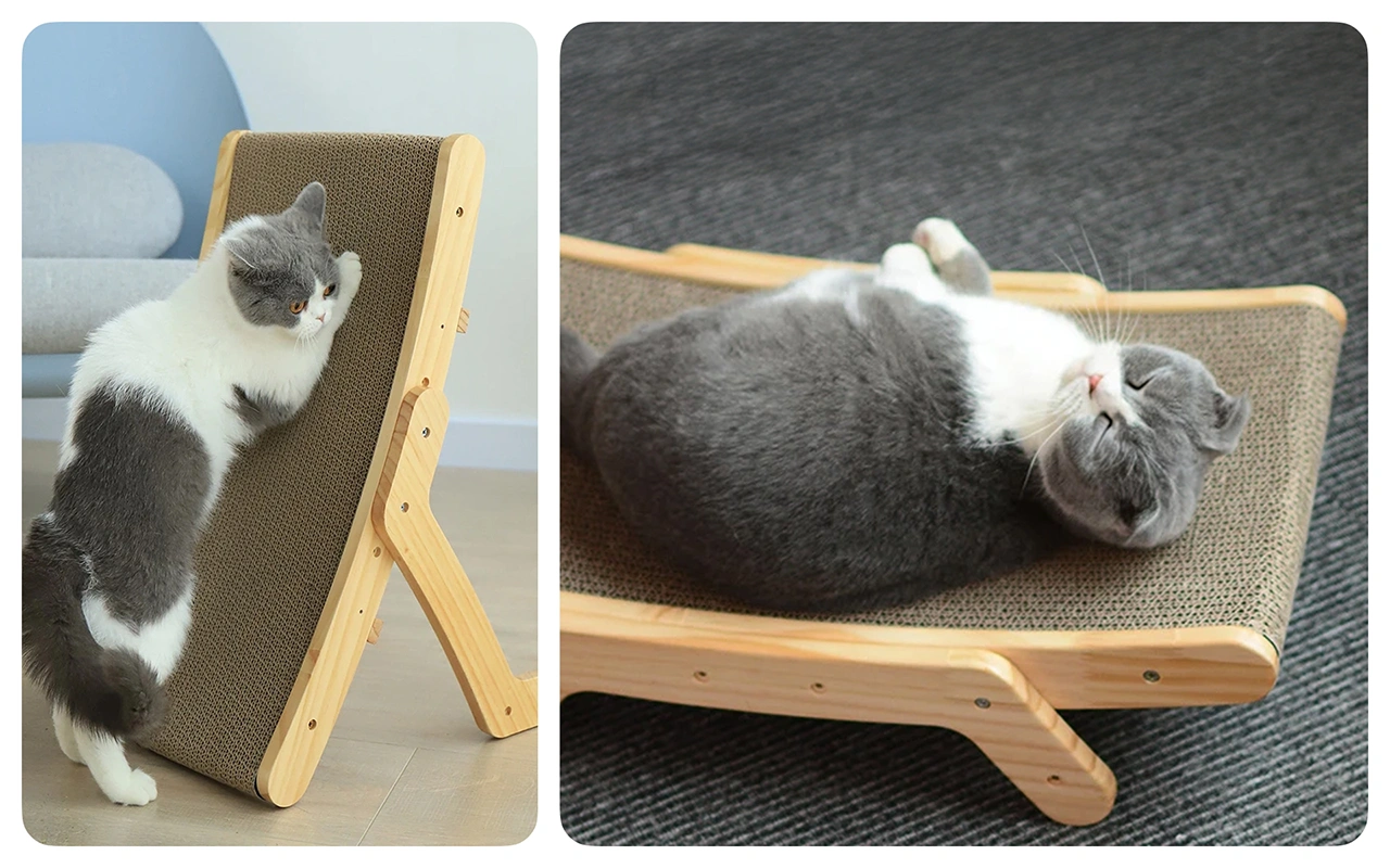 Flere vinkler støtter strekk, avslapning og muskelstyrking. Hver katt finner sin favorittposisjon for hvile eller lek.