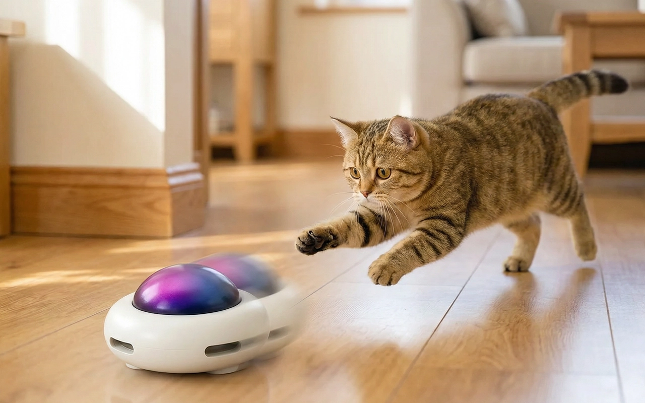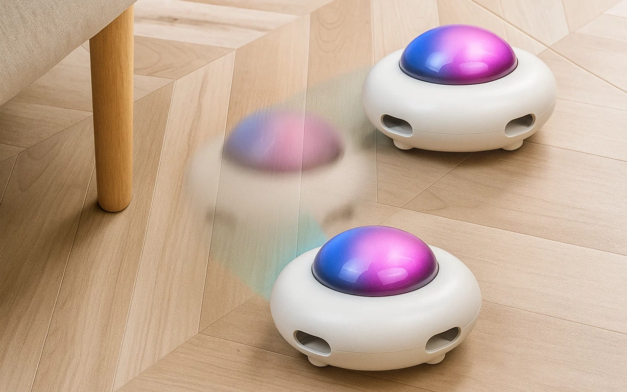 Kjøpte denne til min late katt, og nå jager han den rundt i timevis. Måten den unngår møbler på er virkelig imponerende!