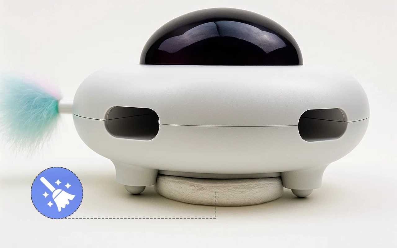 Innebygd filt samler løse hår mens den ruller rundt. Gulvene holder seg renere mens kjæledyret brenner energi på å jage fjær.