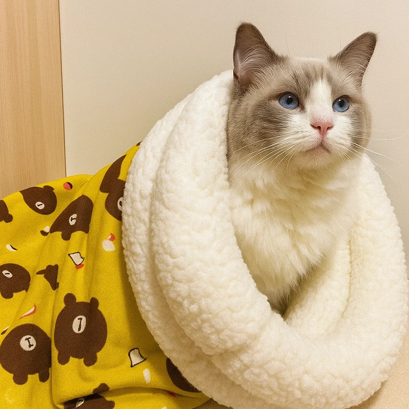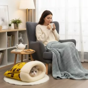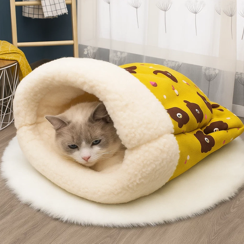 Denne kosesekken gjør det lett for katten min å ta en lur hele dagen. Pelsen inni er supermyk, og det søte designet ser nydelig ut i stua vår.