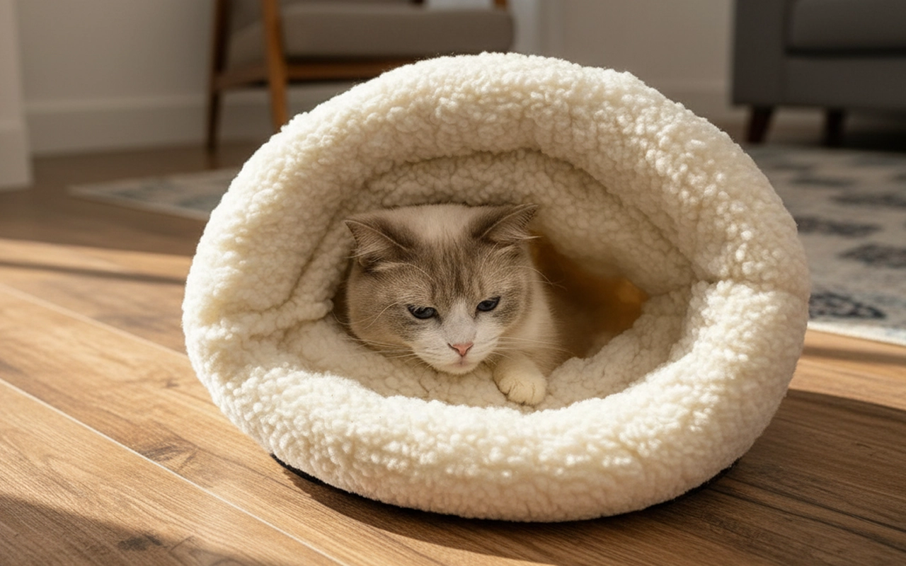 Jeg elsker hvordan den lukkede kattesengen holder alt pelsen samlet. Det er lett å riste ut hår, og trekket kan tas av for rask håndvask.