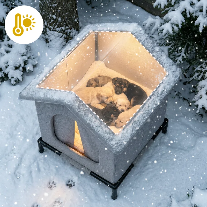 Isolerte vegger holder på varmen for avslappende stunder på kalde dager. Kjæledyrene slapper av i et temperaturkontrollert rom hele sesongen.