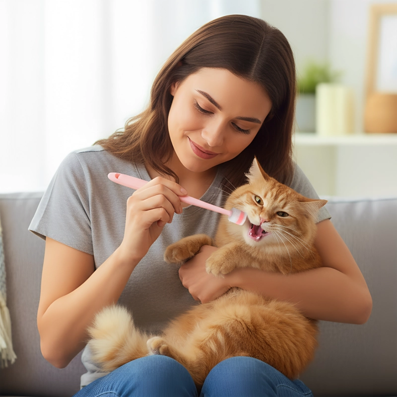Tannkjøttet forblir beskyttet mot hard skrubbing eller irritasjon. Kun matsikre materialer berører katten din for trygghet.