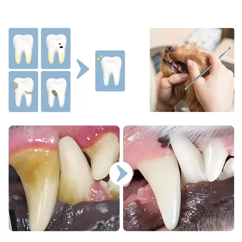 Vårt sett inneholder tre verktøy som gir omfattende munnhygiene. Skraperen og skaleren rengjør effektivt hundens tenner og fjerner tannstein og annet belegg. Sigdproben hjelper med å oppdage tidlige tegn på tannkjøttsykdom og tannråte. Det er som å ha et profesjonelt tannrensesett for kjæledyret ditt hjemme.