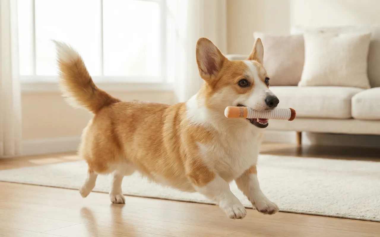 Pipelyder holder lekne valper underholdt og konsentrerte. Hvert øyeblikk blir spennende og gjør hver dag mye lysere.