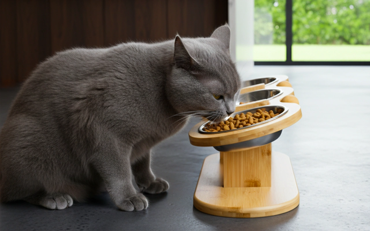 Å spise på skrå hjelper katter å svelge lett og komfortabelt. Dette reduserer kvelning, oppblåsthet og hjelper kroppen deres å ta opp næringsstoffer.