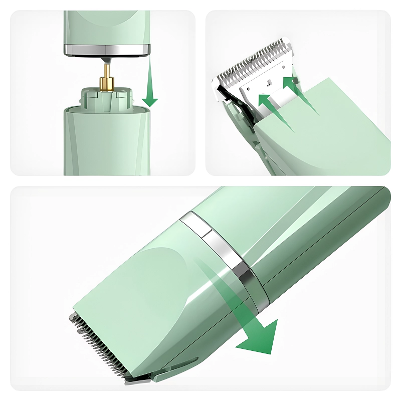 Bytt mellom fire hoder for komplett kjæledyrpleie. Ingen behov for ekstra utstyr, alle pleiebehov dekkes.