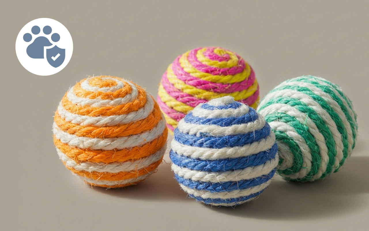 Giftfri sisal beskytter kjæledyr mot skade og ubehag. Hver ball gir holdbar og trygg underholdning for alle lekne dyr.