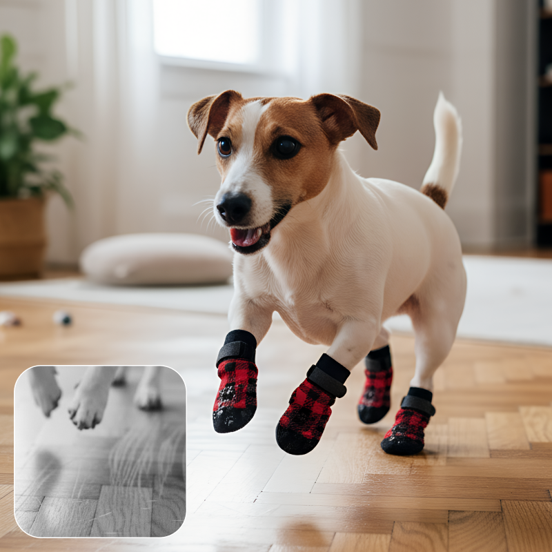 Kjæledyr elsker å løpe, men glatte gulv fører ofte til uhell. Primdog hundesokker gir poter grep slik at det føles trygt å gå i hvert rom. Strikket bomull føles mykt, og fargerike mønstre ser muntre ut.
