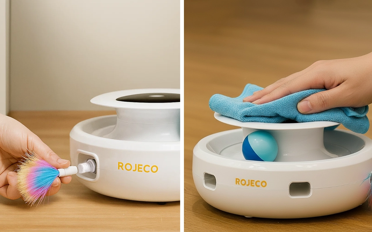 Jeg setter den på tilfeldig modus så katten min ikke blir lei. Det gjør leketiden mye morsommere for henne. Lett å rengjøre også.