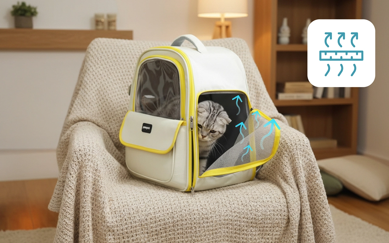 Ventilerte netting-sider forhindrer innestengt luft og holder luften frisk. Din følgesvenn holder seg kjølig og fornøyd selv på solrike dager.