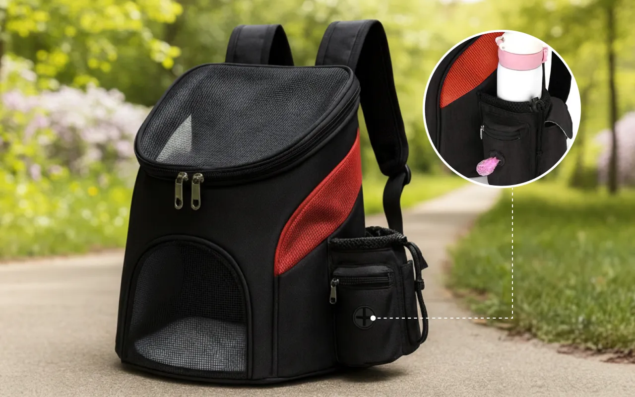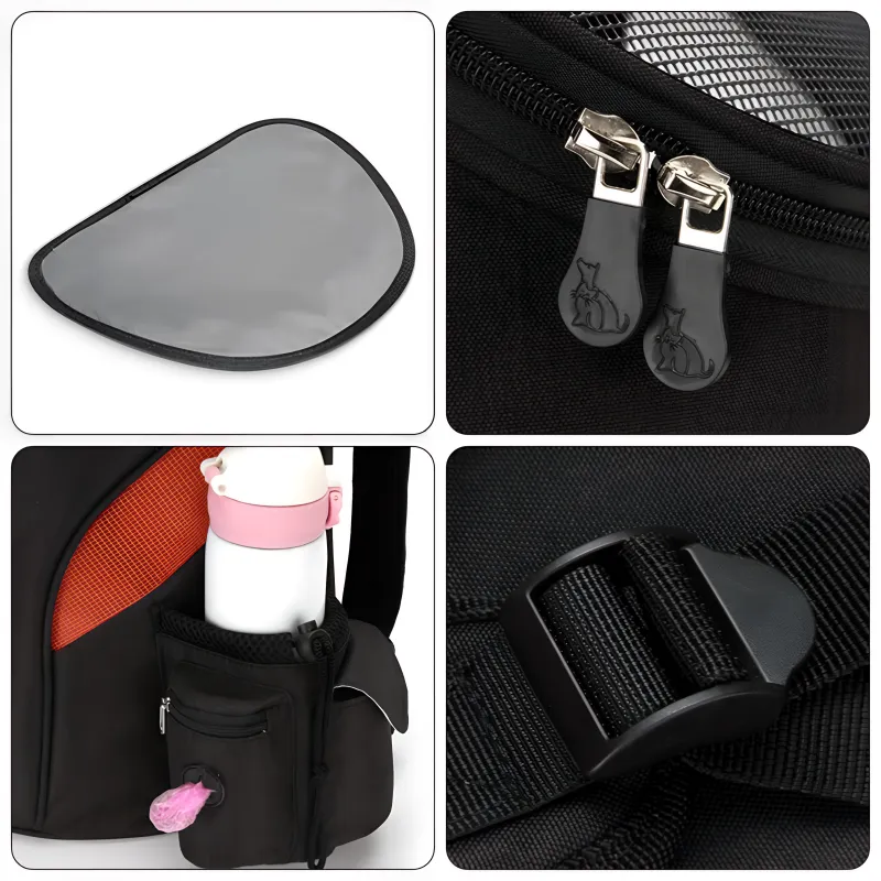 Holdbar konstruksjon og sterke glidelåser hindrer rømming eller ulykker. Ta med deg følgesvennen din overalt med full trygghet.