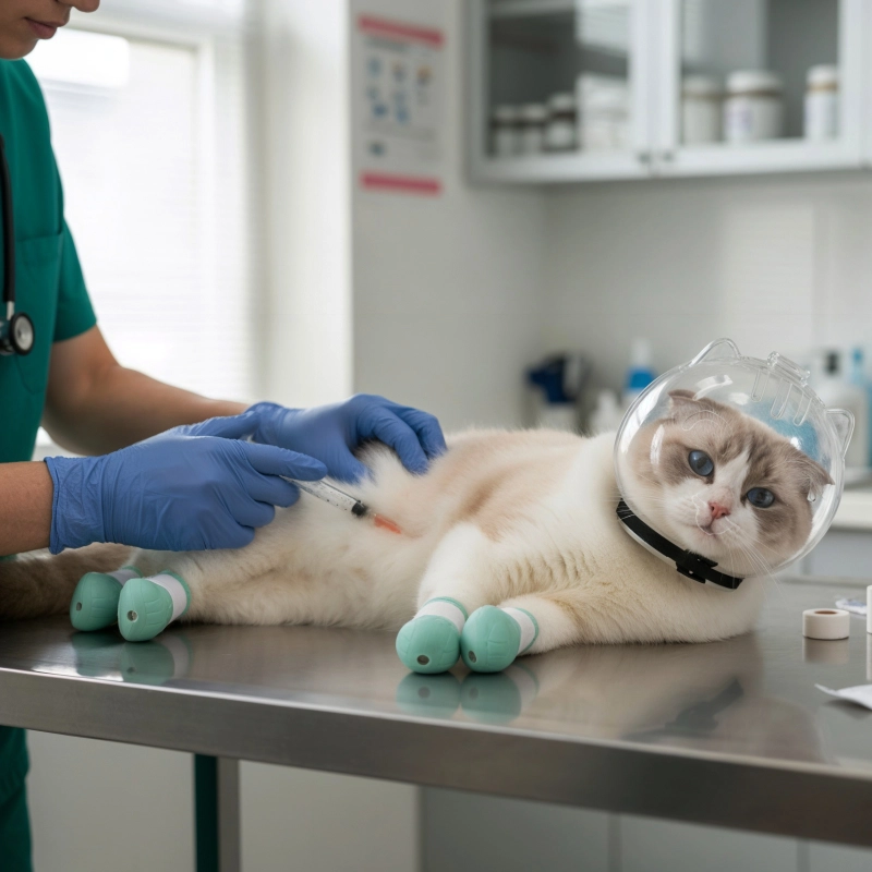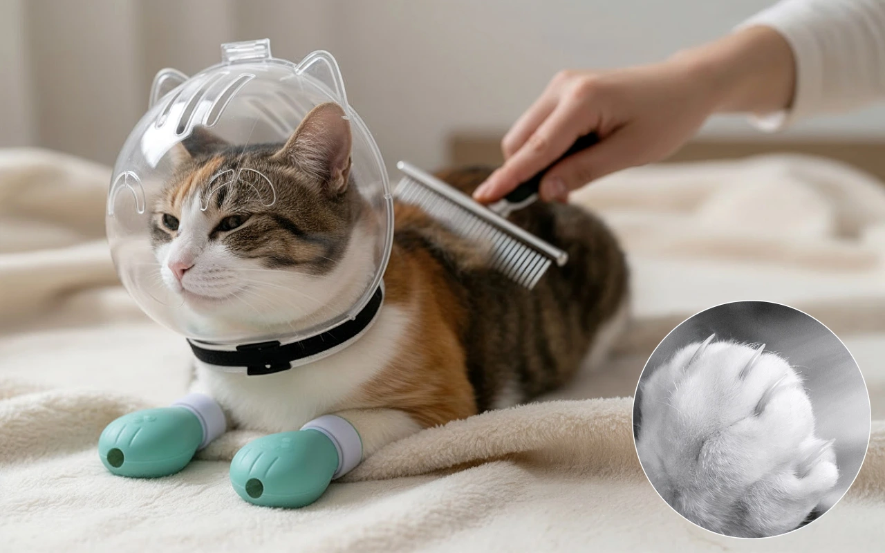 Kattemunnkurv mot biting og stell, pote-beskyttere mot kloring
