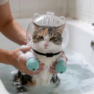Jeg klarte å bade begge kattene mine for første gang uten noen riper. Ventilasjonen hjelper virkelig, og den festes på sekunder, så det blir ingen drama fra kjæledyrene.