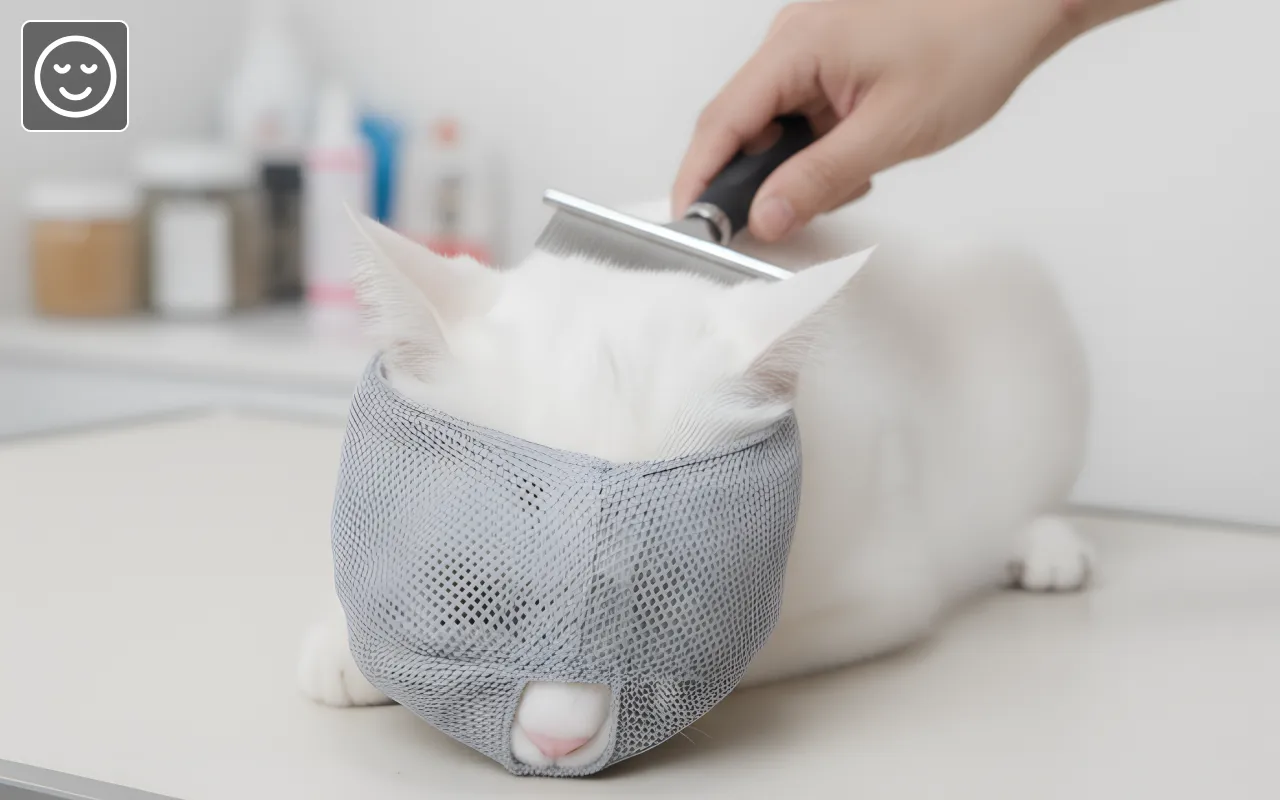 Enkel å ta på, holder katten min rolig og trygg. Nettingen er myk, og pelsstellet er mye mindre stressende for oss begge.
