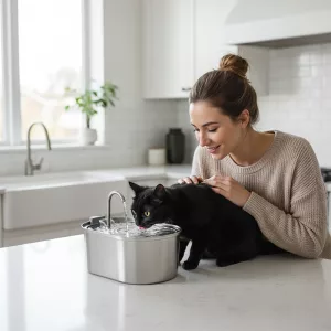 Primdog Kattefontene gir kjæledyr rent vann hver dag. Det rustfrie designet sikrer langvarig holdbarhet og enkel rengjøring. En stor beholder betyr mindre etterfylling og mer ro i hjemmet.