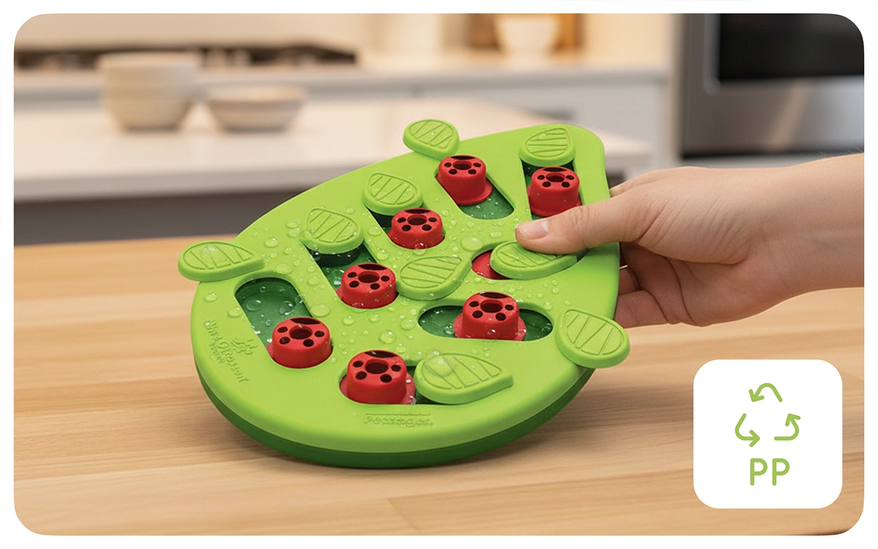 Primdog Kattegodbit-Puslespill bruker kun matsikre komponenter. Ingen løse deler betyr enkel rengjøring og bekymringsfrie økter.