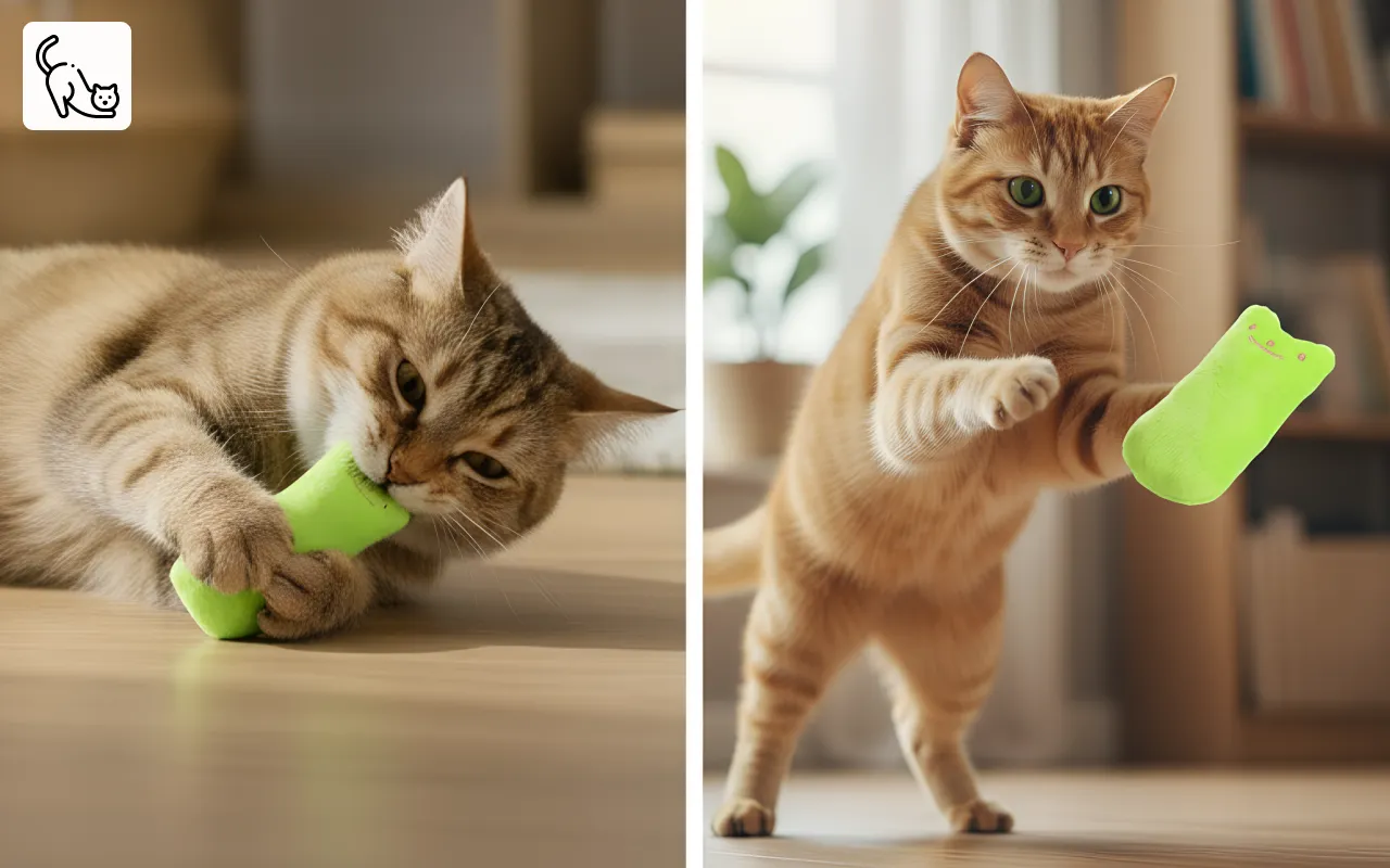 Kattemynte inne tiltrekker oppmerksomhet og oppmuntrer til livlig interaksjon. Hopping og tygging holder kjæledyret ditt aktivt og glad.