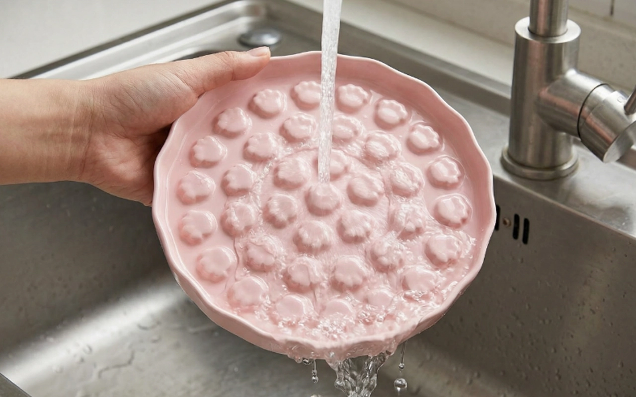 Vaskingen krever bare en rask skylling i varmt vann. Ingen skjulte rester eller flekker blir igjen på dette designet.