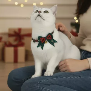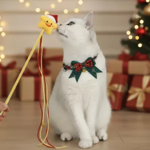 Dette lille halsbåndet gjorde julebildene våre helt nydelige! Det er mykt og kattungen min brydde seg ikke om å ha det på seg, noe som er en stor seier.