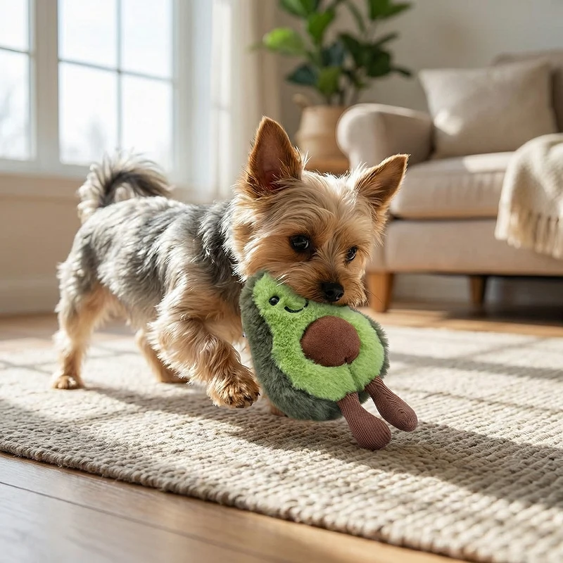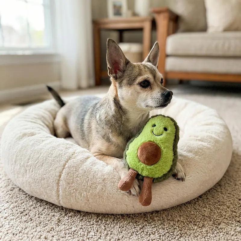 Søt fleece avokado valpeleke for tannfrembrudd – slitesterk og myk hundeleke