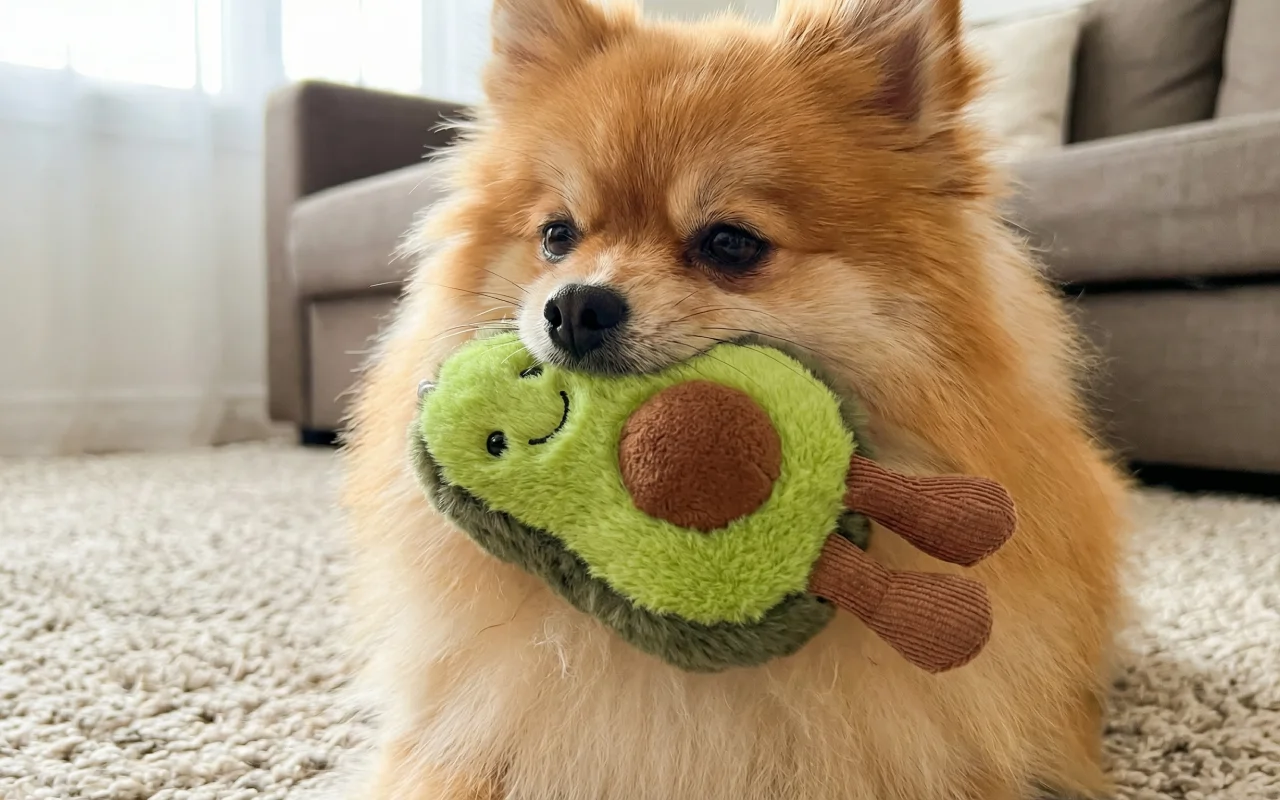 14 omtaler for Søt fleece avokado valpeleke for tannfrembrudd – slitesterk og myk hundeleke