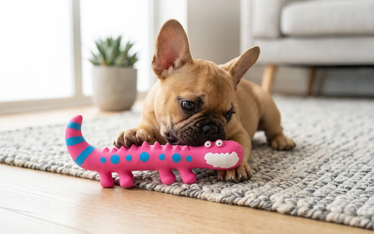 Myk konstruksjon motstår bitt og varer lenge. Primdog-leken er skånsom mot munnen og trygg for daglig lek.