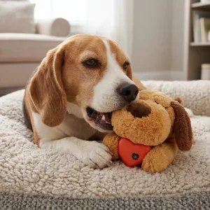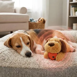 Hunden min gikk fra å klynke hele natten til å sove godt. Den milde pulsen er beroligende, og bamsen er perfekt for kos og lek!