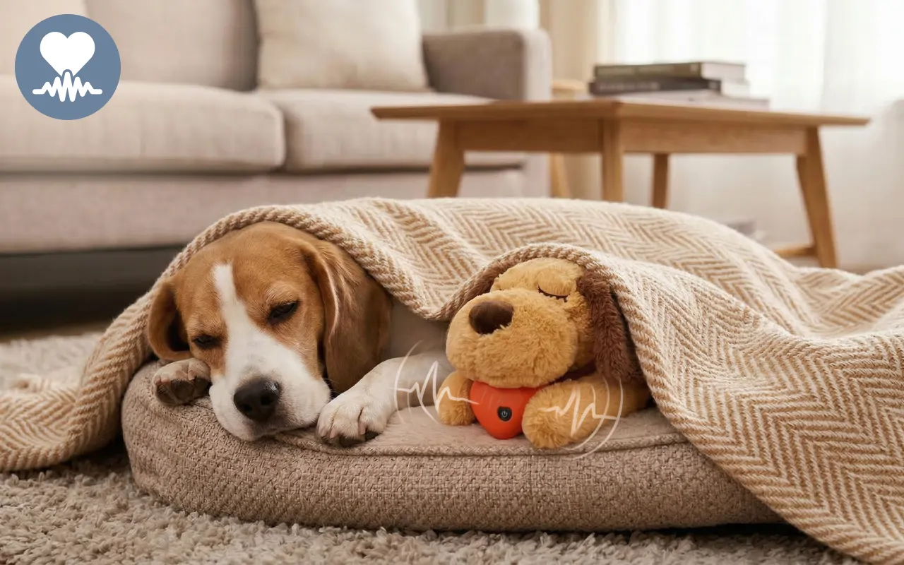 En mild hjerteslagslyd oppmuntrer til dyp, god søvn hver natt. Ikke mer bjeffing eller klynking fra plutselig uro eller ubehag.