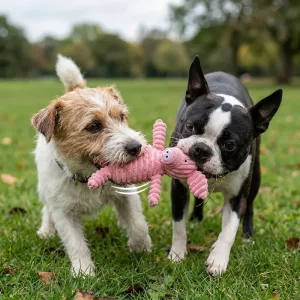 Lyse dyreformer inviterer alle valper til lekne øyeblikk. Kordfløyel av høy kvalitet føles myk, men tåler ivrige kjefter. Pipelyder motvirker kjedsomhet og oppmuntrer til sunne tyggevaner. Sikkert, giftfritt materiale gir trygghet under hver lekestund.