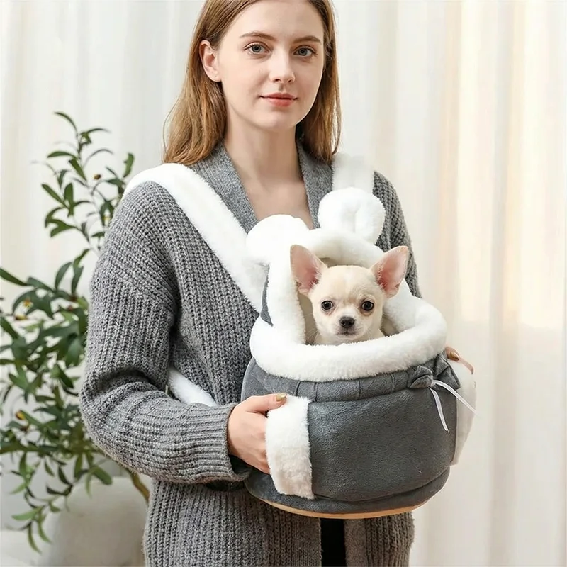 Søt plysj vinterryggsekk til hund – varm reisebag for kjæledyr