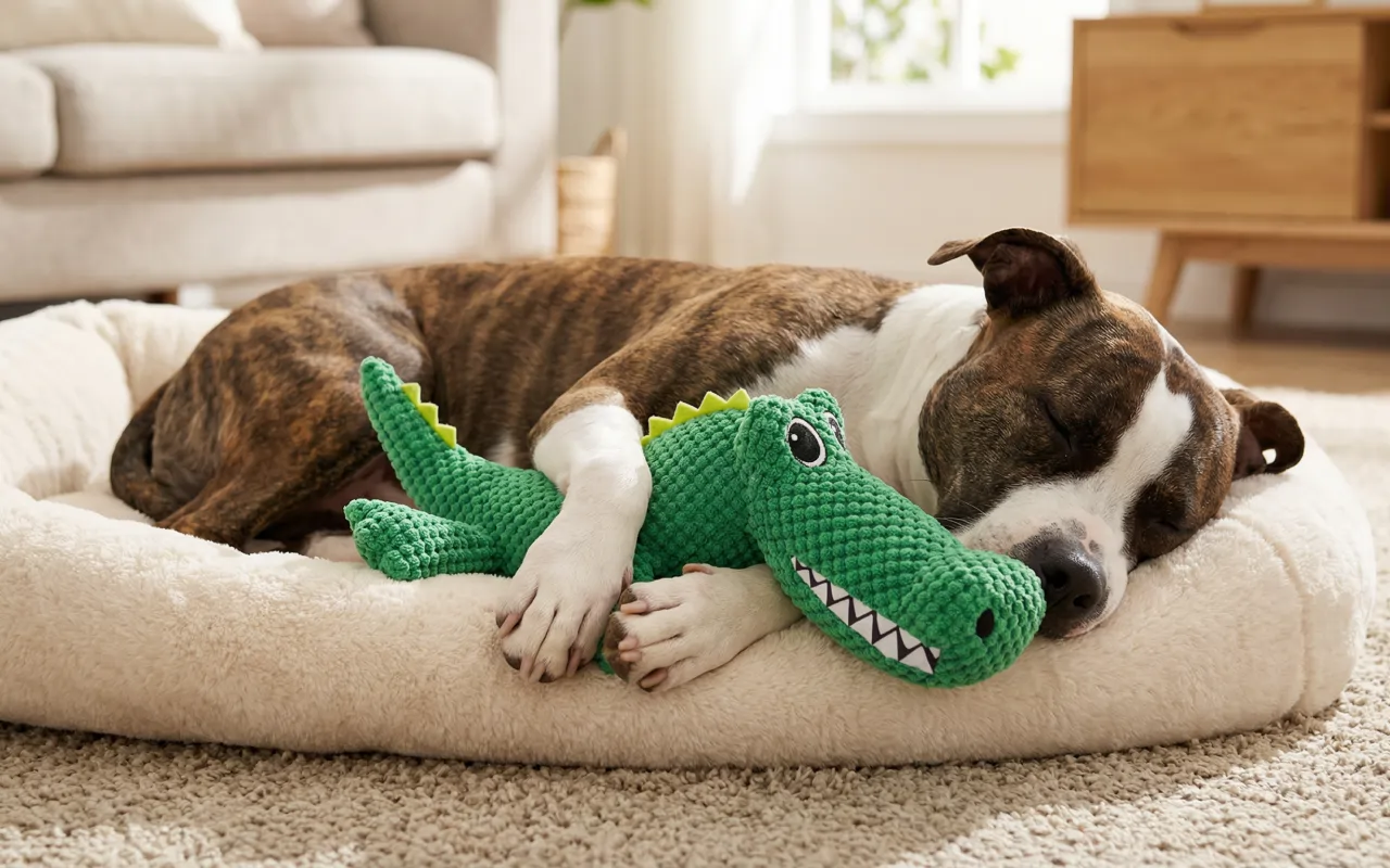 12 omtaler for Søt og myk fleece krokodille interaktiv pipende hundeleke