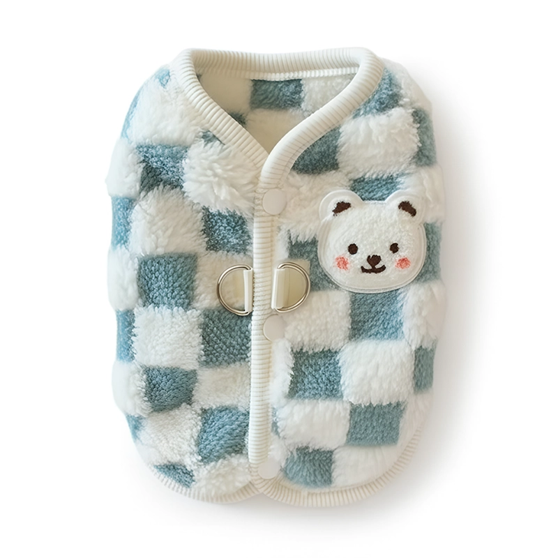 Søtt bjørnedesign gir smil på kalde morgener. Lyse farger gjør at hunden skiller seg ut og føler seg spesiell.