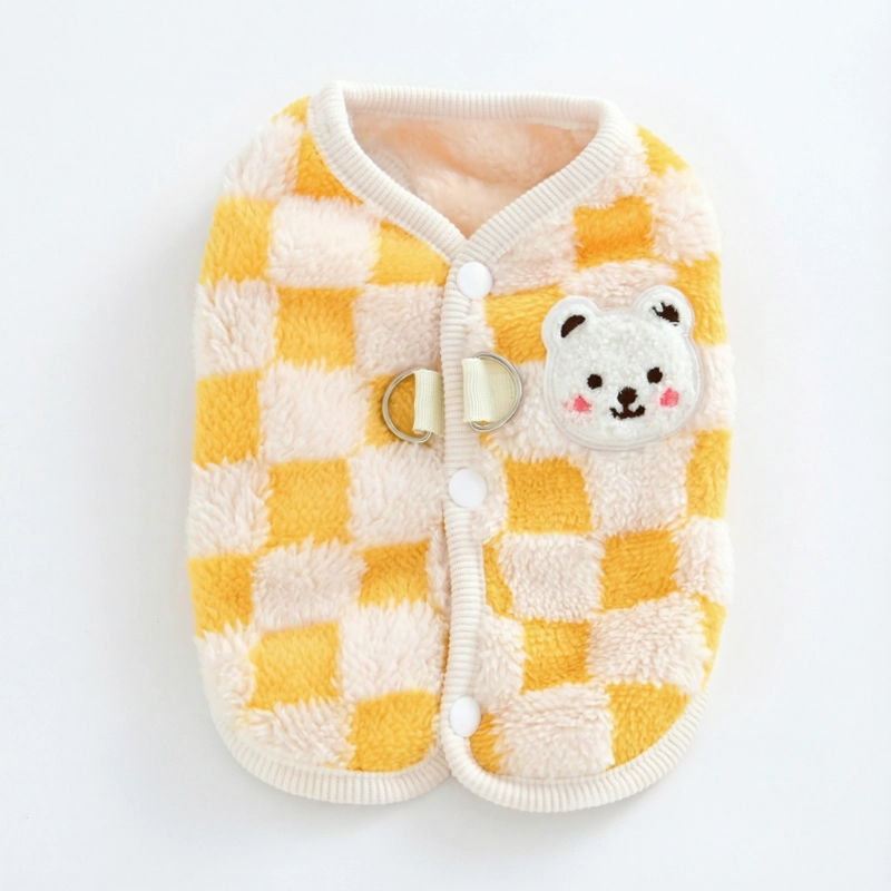 Vi kjøpte den koselige vesten til hunden vår, og hun ser helt nydelig ut! Knapper gjør det raskt å kle på henne, og jeg elsker hvor myk den er.