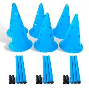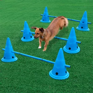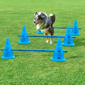 Settet inneholder alt du trenger: kjegler, stenger og hinder. Alt du behøver for å lage en spennende agilitybane er inkludert.