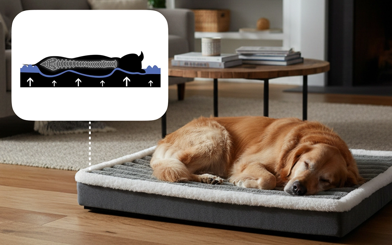 Eggkasse-skum støtter kjæledyret og lindrer ubehag fra trykk. Kjæledyret får lettere bevegelser og mindre stivhet etter oppvåkning.