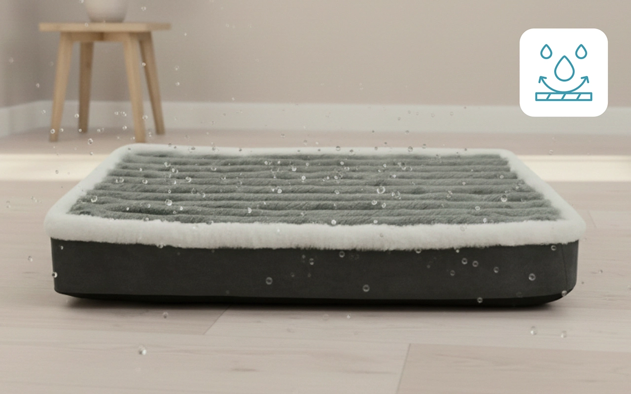 Tre slitesterke lag holder fuktighet ute og forhindrer lekkasjer. Søl og uhell vil ikke skade kjæledyrets hvilested.