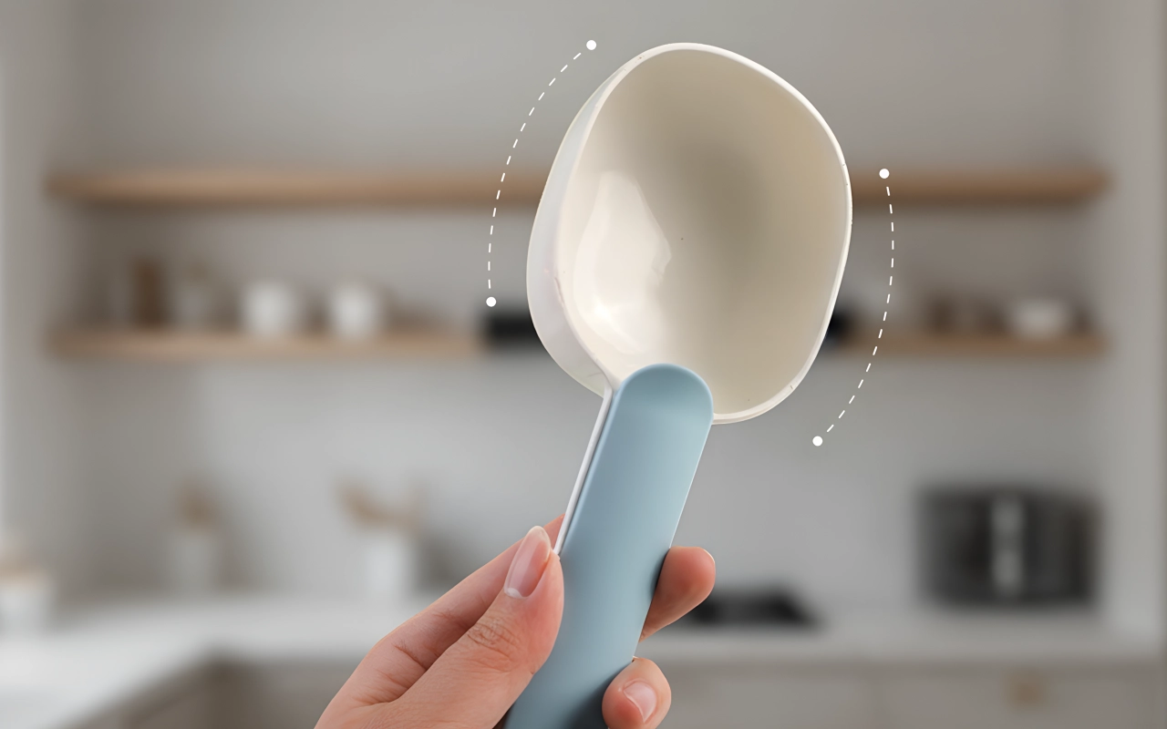Nyt ryddig mating ved å holde hendene rene hver gang. Den buede gjør det enkelt å øse og forhindrer søl.