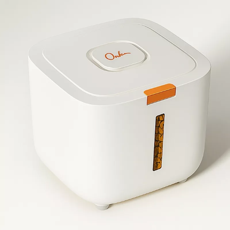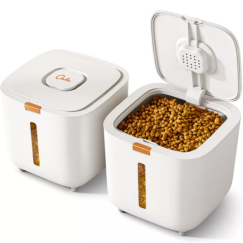 Vår beholder gir enkel tilgang til kjæledyrets mat. Den har en bred åpning som gjør det lett å øse opp.