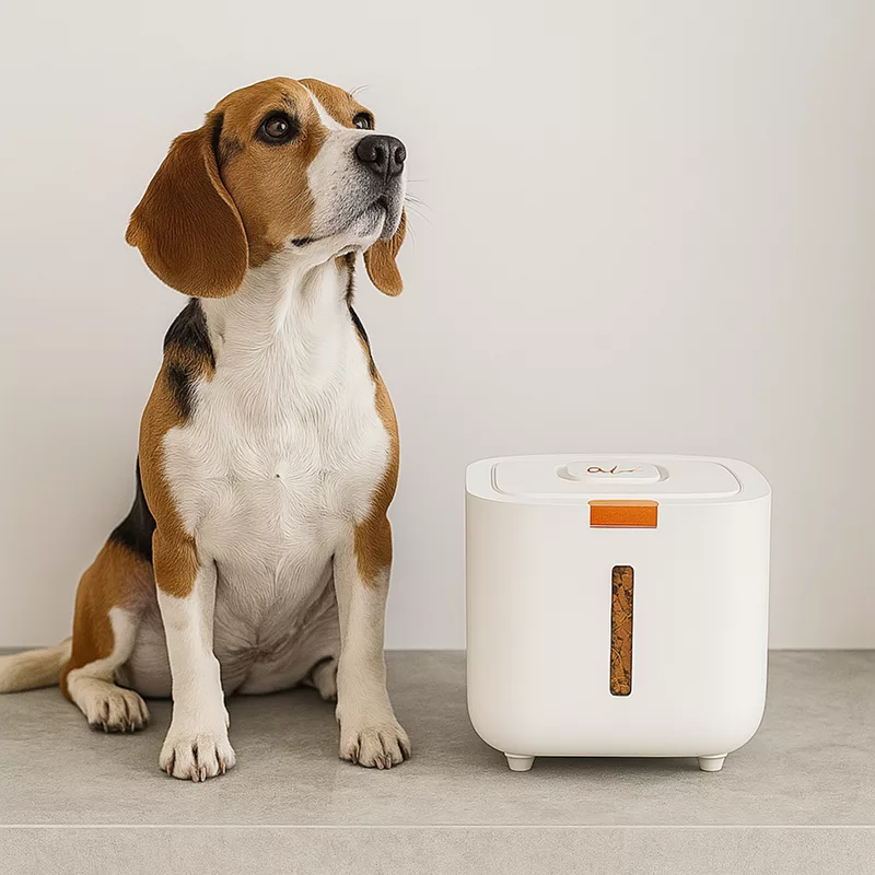 Bevar hundens mat med Primdog-beholderen. Den garanterer friskhet, som bidrar til kjæledyrets helse. Den kompakte størrelsen sparer betydelig med plass på kjøkkenet.