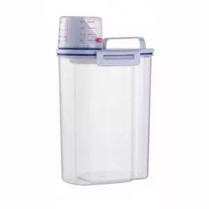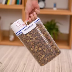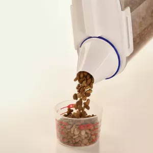 Fornøyd med dette kjøpet fordi tørrfôret aldri blir gammelt lenger. Det er også lett å bære den fra kjøkkenet til verandaen siden lokket holder tett.