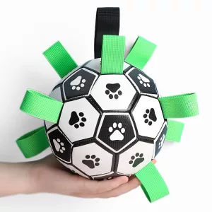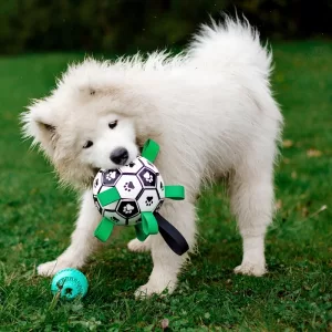 Denne fotballleken distraherer kjæledyr fra å tygge på ting og andre uønskede handlinger. Den vil hjelpe til å lindre kjedsomhet, stress og angst hos hunden din.