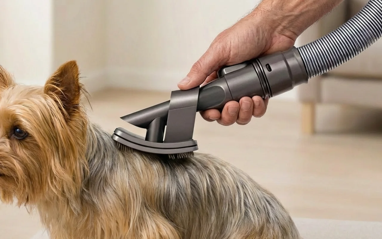 Børsteutstyr til støvsuger for pelsstell av hund