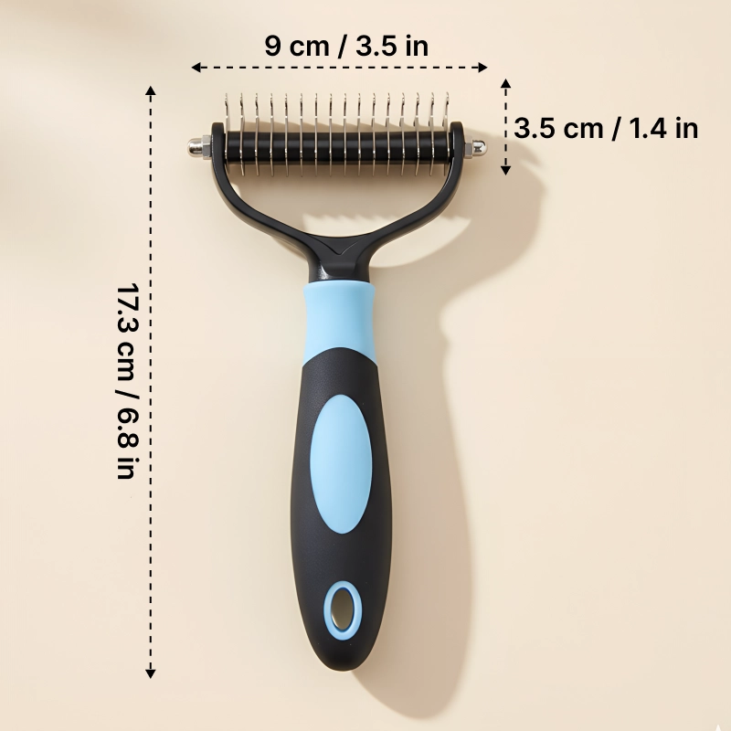 Bruk den ene siden for vanskelige knuter og den andre for å tynne ut pelsen. Oppnå glatte resultater på kortere tid hver gang.