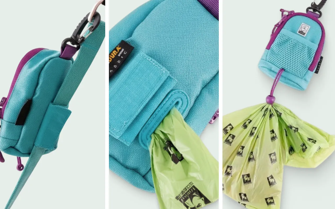 Å kunne ha med både godbiter og poser samtidig er fantastisk. Den lille pungen passer også til nøklene mine, så jeg slipper å ta med stor veske lenger.