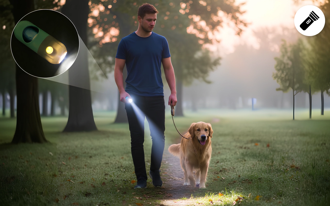 Finn avfall enkelt under kveldsturer eller tidlige morgener. Ikke mer oversette flekker eller bekymringer for å rydde opp sent.