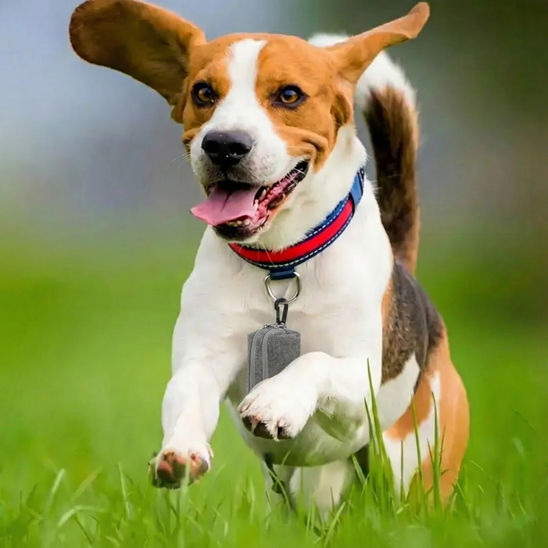 Denne dispenseren har plass til alt jeg trenger for turene. Den passer til nøklene mine og godbiter, og posene holder seg alltid tørre selv når det regner. Har aldri mistet noe!